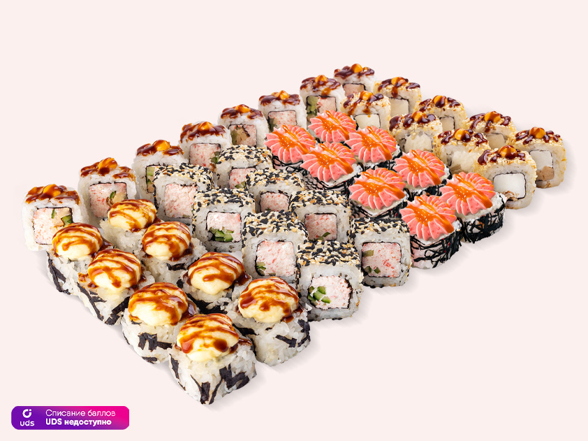 Роллы: Разенган, Тоямо, Калифорния в кунжуте, Пинк. Запечённый ролл Дабл чиз